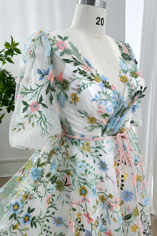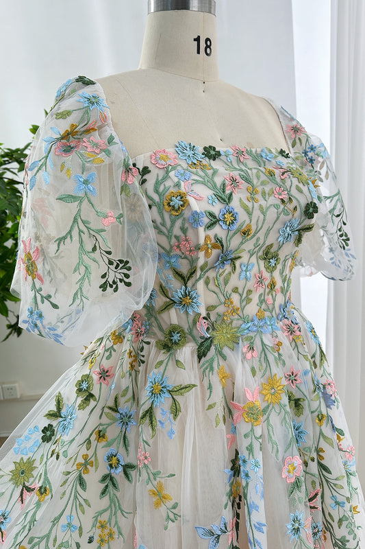 Wildflower Embroidered White Tulle A-Line Wedding Dress