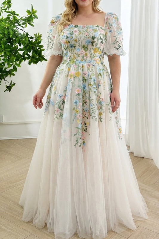 Whimsical Wildflower Embroidered Tulle Midi Dress