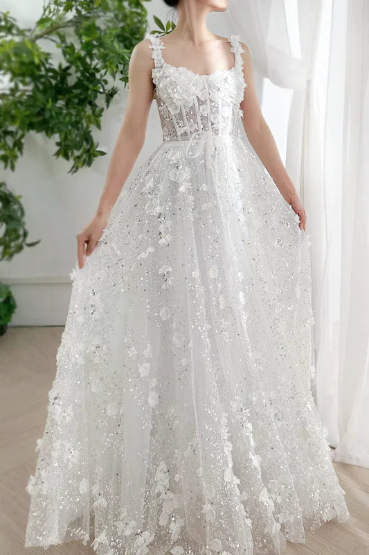 Straps Scoop Neck Corset 3D Floral Sequined Dress