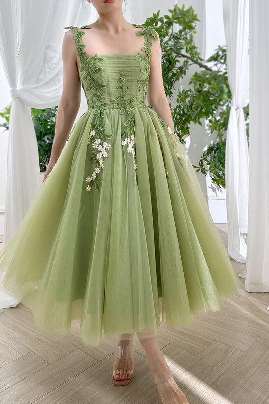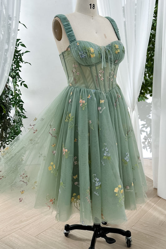 Corset Strapless Leaf Embroidered Dress with removable Straps