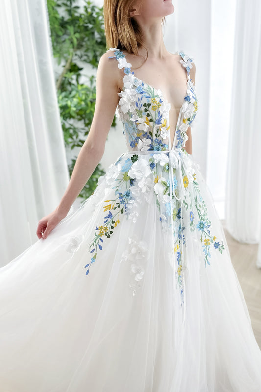 3D Floral Corset V Neck Floral Wedding Dress