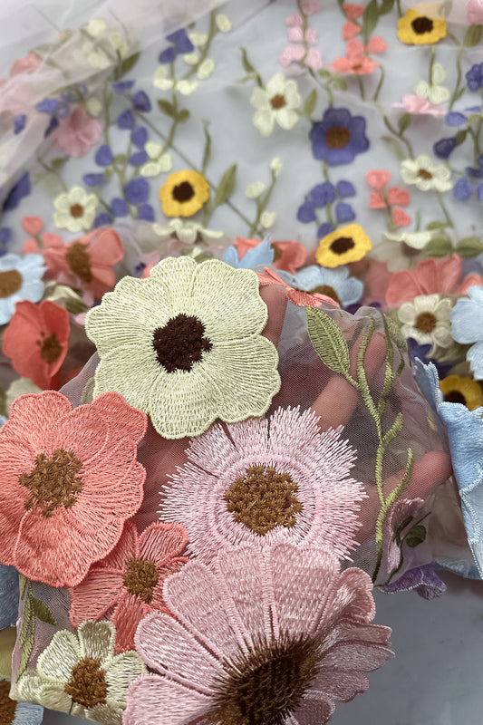 Vestido floral bordado con cuello en V y lazos extraíbles