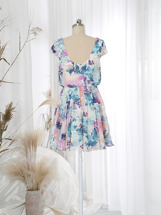 Vestido MissJophiel corto línea A floral con mangas tipo capa para cóctel o invitadas